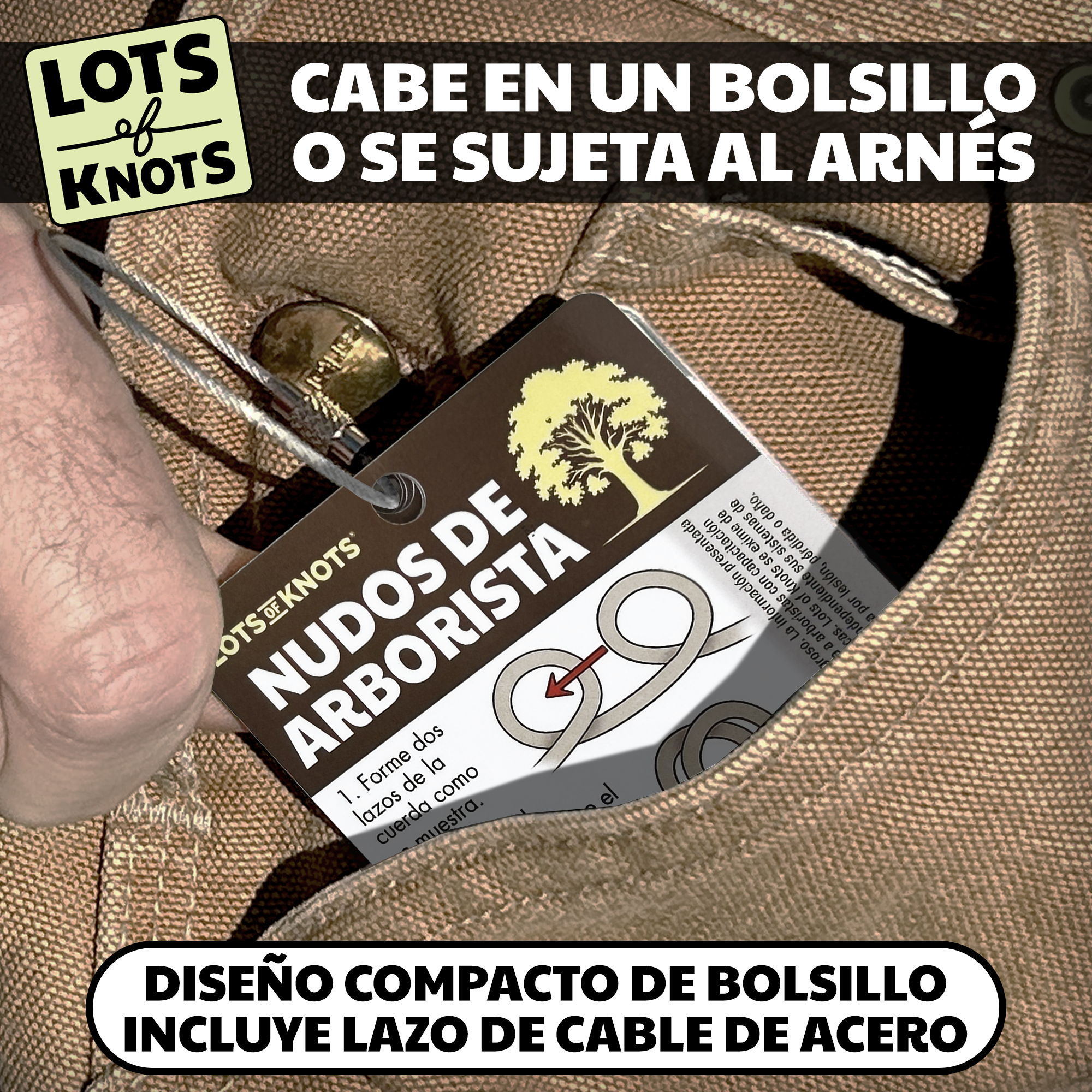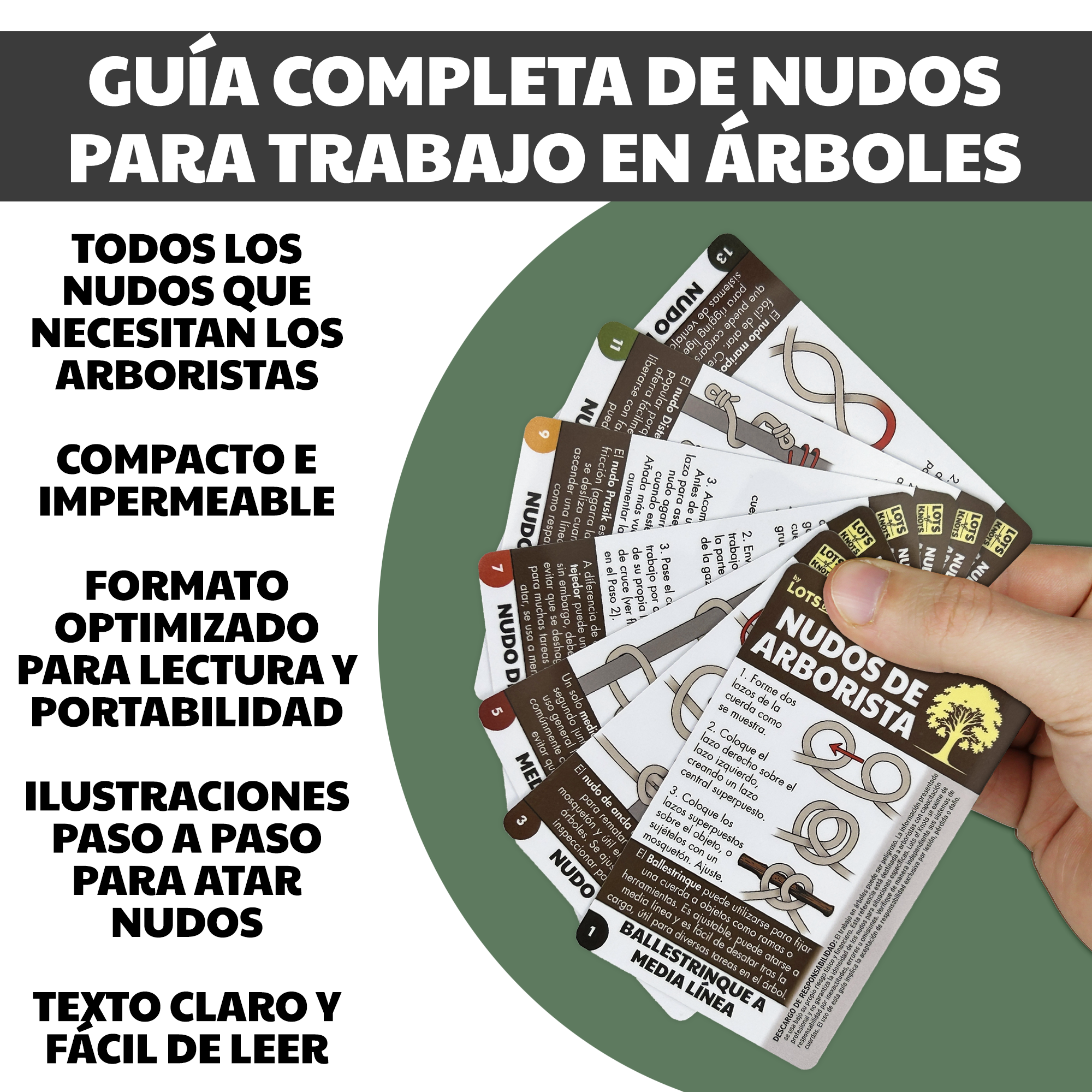 - EDICIÓN EN ESPAÑOL: Nudos esenciales de arborista con instrucciones completas en español, diseñados para tener siempre a mano los nudos clave de trepa en situaciones reales de trabajo en árboles.