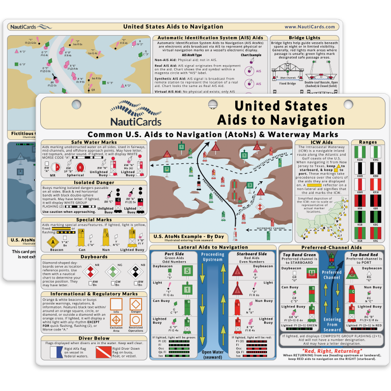- Covers the full U.S. Aids to Navigation system, including lateral and non-lateral buoys, preferred channel aids, safe water marks, and AIS symbols